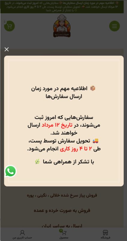 در اولین مرحله برای شما اطلاعیه ای مبنی بر روز سفارش گیری و تاریخ ارسال برا شما به نمایش گذاشته خواهد شد