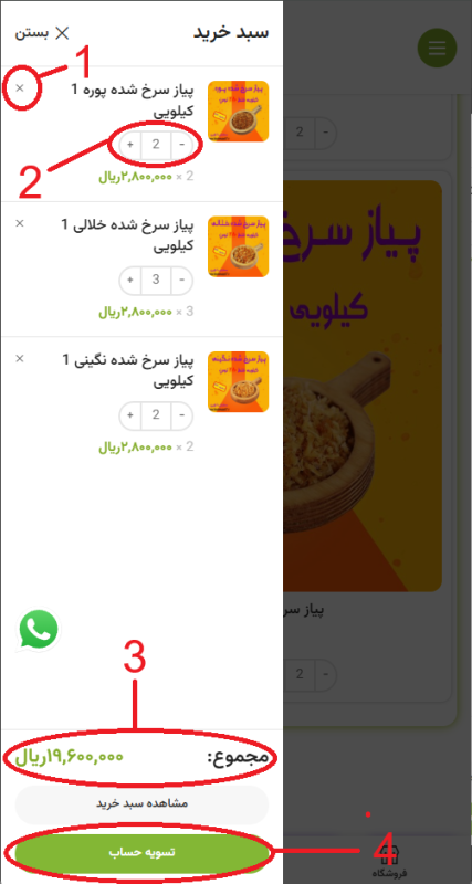 نحوه خرید و ثبت سفارش پیاز سرخ شده خلالی-نگینی-پوره