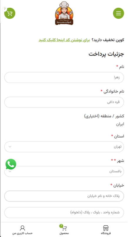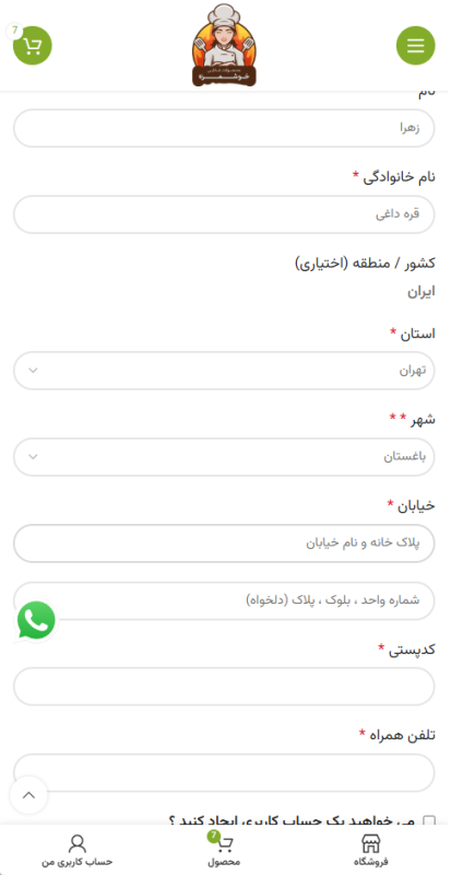 در این قسمت هم حتما کد پستی و شماره موبایل خود را با دقت وارد کنید که صحیح باشد.