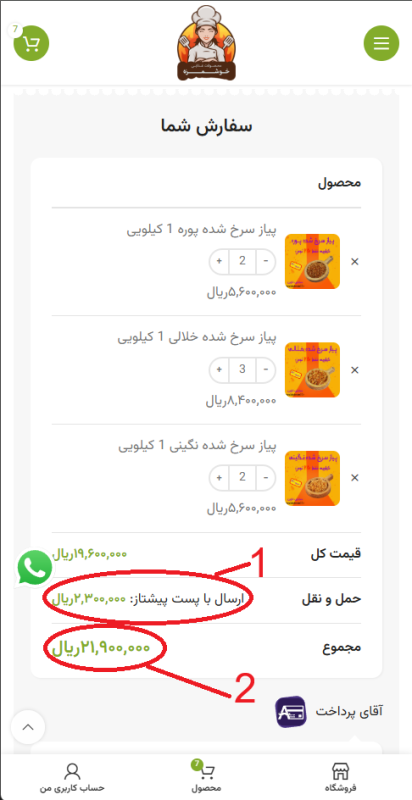 گزینه 2: مبلغ نهایی + مبلغ پستی در این قسمت نمایش داده میشود .