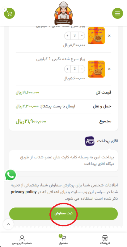 مرحله ششم تکمیل ثبت نهایی سفارش و پرداخت